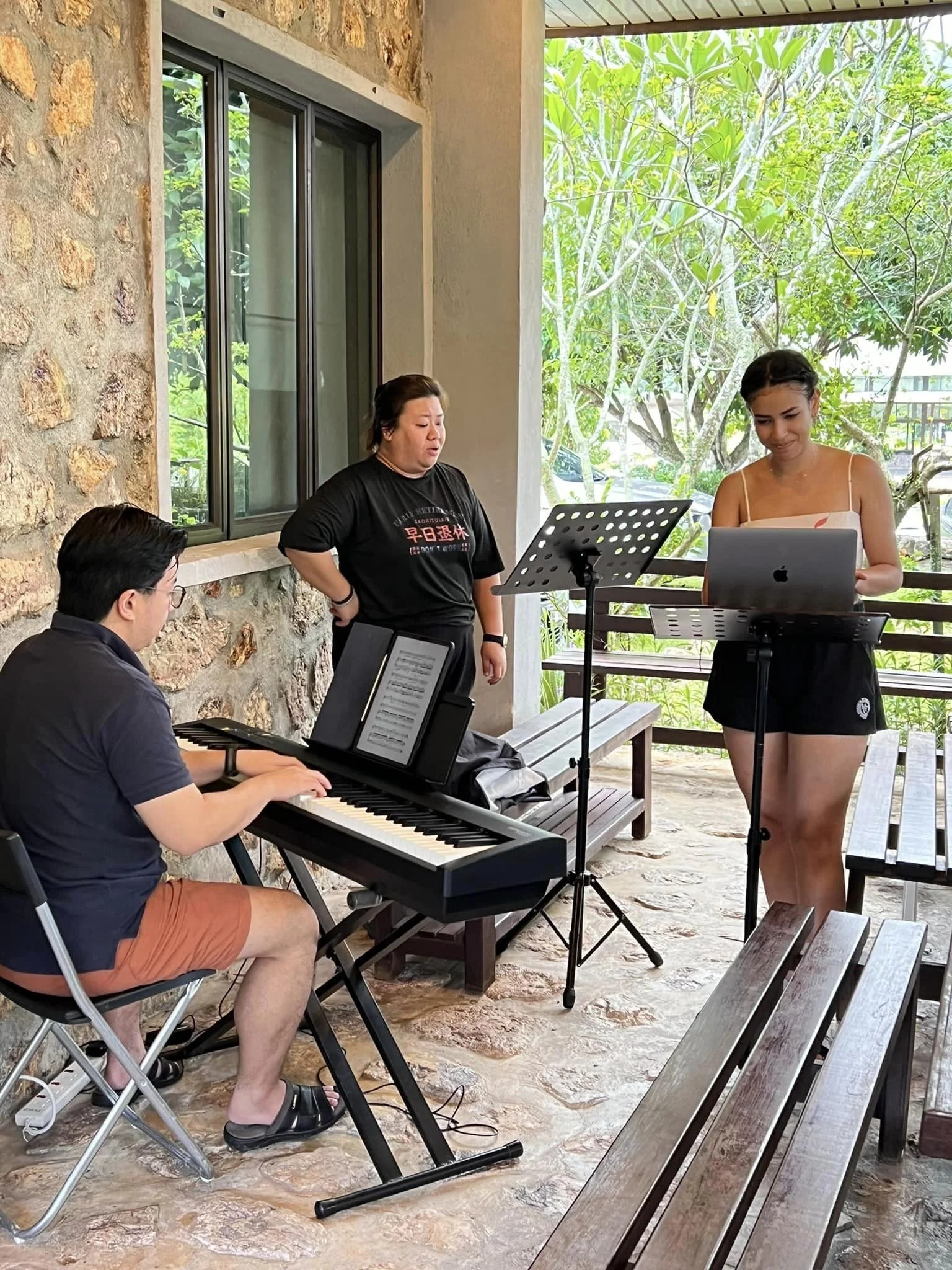 7 July 2024 . Day 2 After breakfast, participants gathered for the morning exercise followed by another busy day of practice, practice, practice. Participants are coached on diction, vocal technique and musicianship.